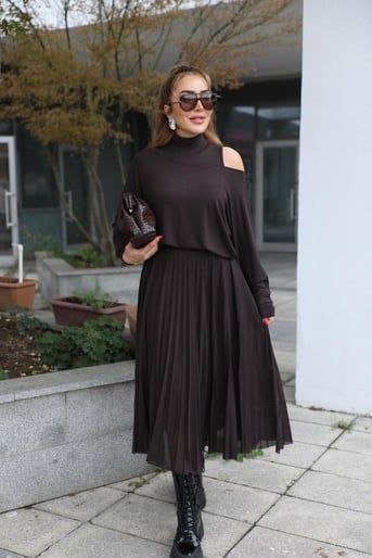Kadın Triko Plise Ve Tül Detay Iki Parça Elbise