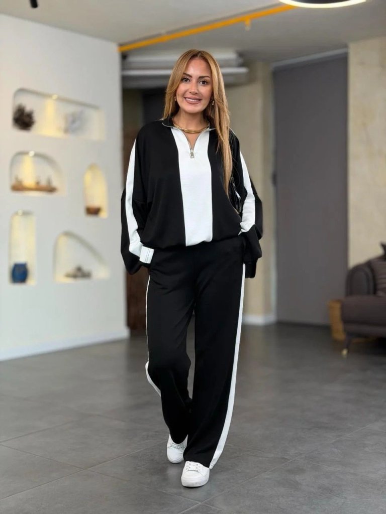 Kadın Uzun Kollu V Yakalı Viskon Iki Iplik Bluz Ve Pantolon Ikili Takım