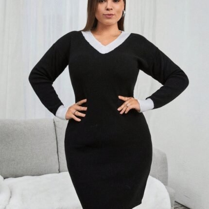 Kadın Dalgıç Kumaş Kayık Yaka Ve Dekolte Detaylı Elbise