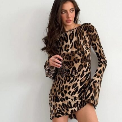 Kadın çan Dokuma Kumaş V Yaka Asimetrik Kesim Elbise