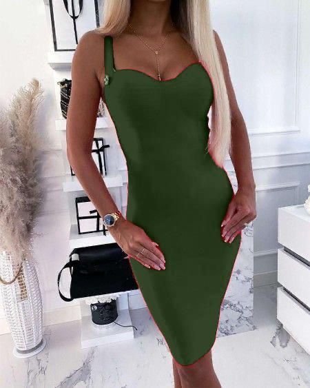 Kadın Dalgıç Kumaş Düğmeli Fermuarlı Askılı Elbise