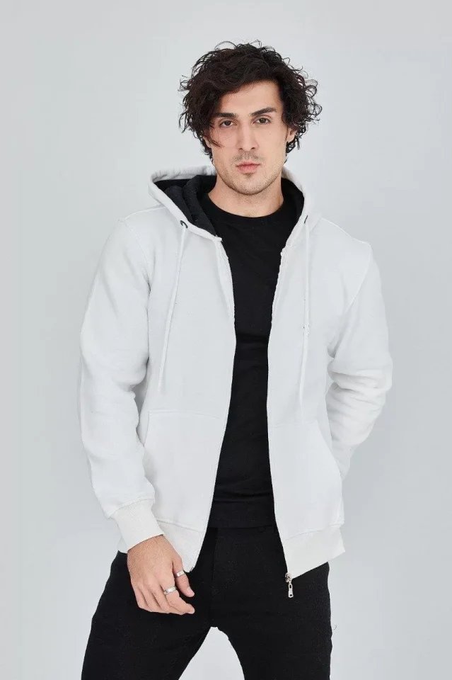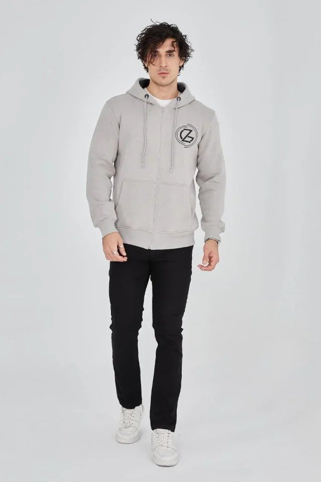 Erkek Kapüşonlu Düz Fermuarlı Hırka