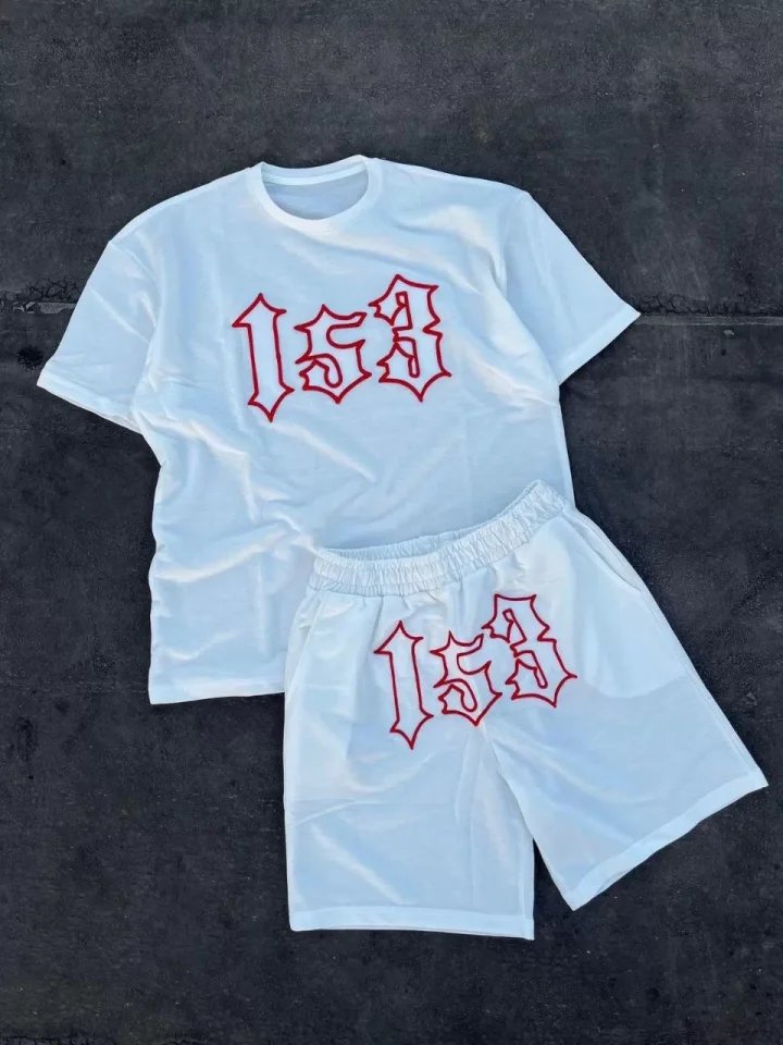 Erkek Ön Ve Arka Baskılı Oversize Bisiklet Yaka T-shirt