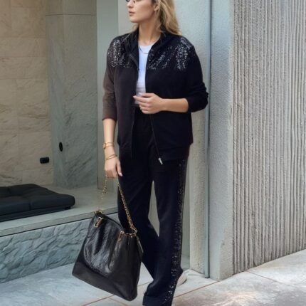 Nakış İşlemeli Üç İplik Sweat Takım- Gri