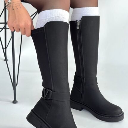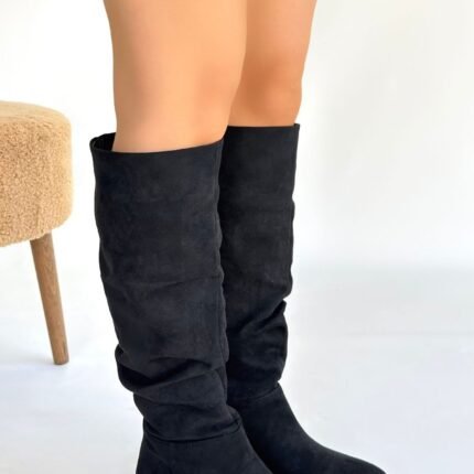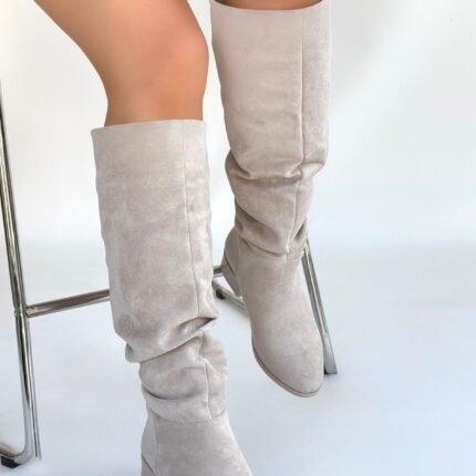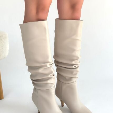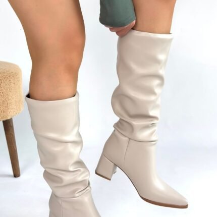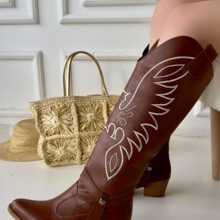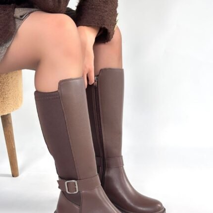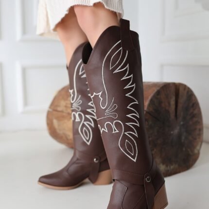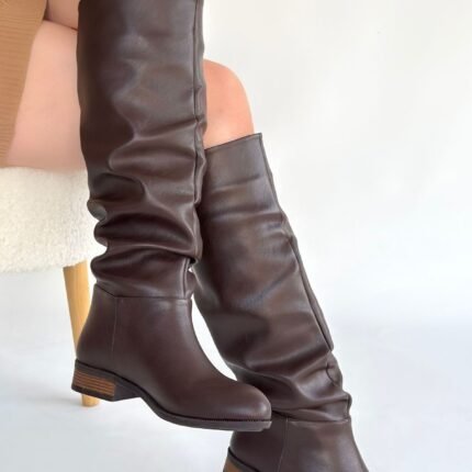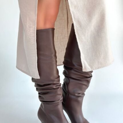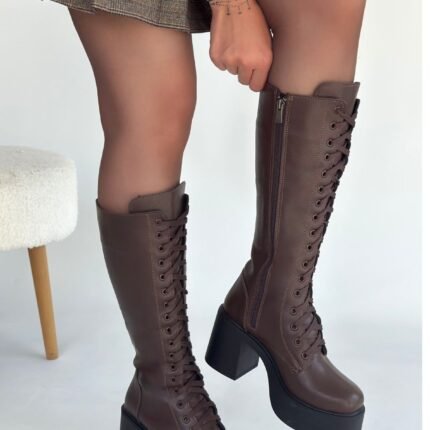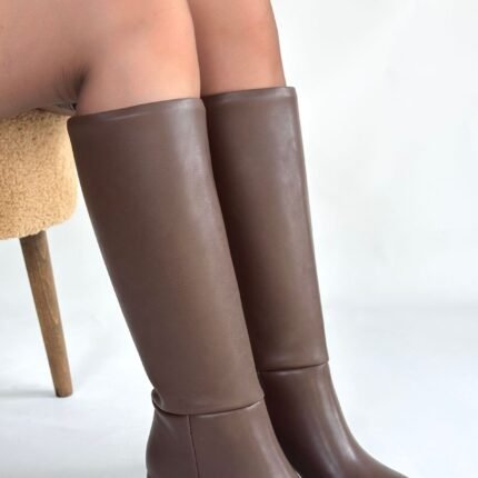 Roksa Acı Kahvei Cilt Topuklu Çizme