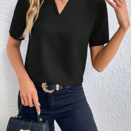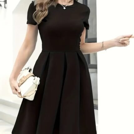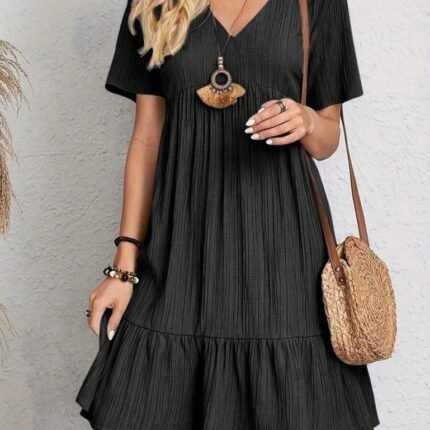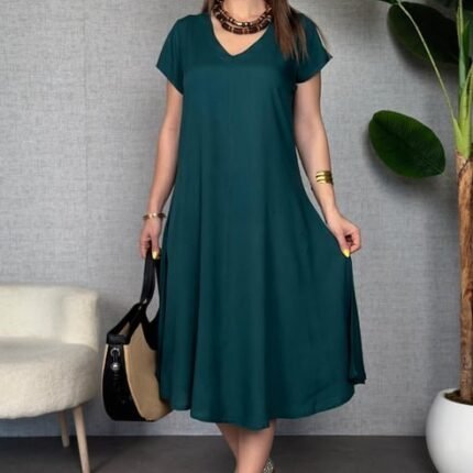 Kadın Kısa Kollu V Yakalı Salaş Janjan Krep Elbise