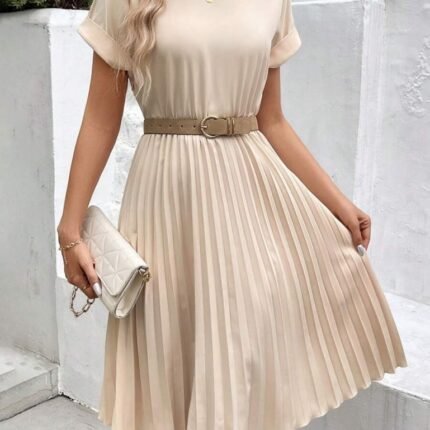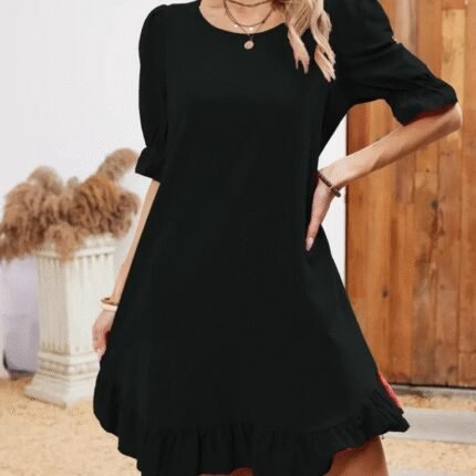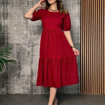 Kadın Kısa Kollu Yakası Açık Katlı Bürümcük Balon Elbise
