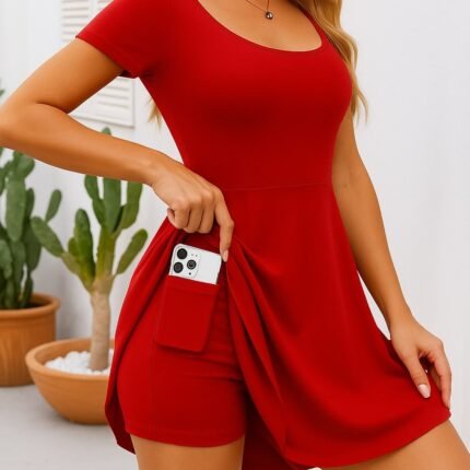 Kadın Kısa Kollu Kol Ve Eteği Volanlı Bisiklet Yaka Aerobin Elbise