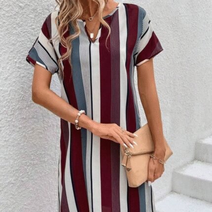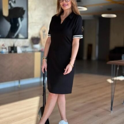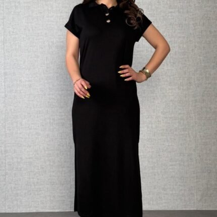 Kadın Kısa Kollu Yakalı Yandan Yırtmaçlı Viskon Iki Iplik Elbise