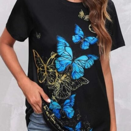 Kadın Kısa Kollu Kedi Ve Pati Baskılı Süprem T-shirt