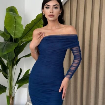 Tek Omuz Açık Derin Yırtmaçlı Krep Tam Boy Elbise