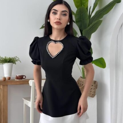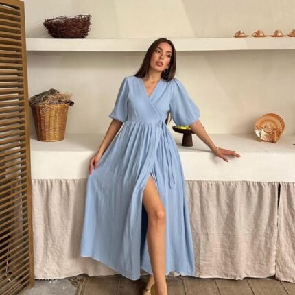 TENCEL ÖNDEN DÜĞMELİ KISA KOL ELBİSE
