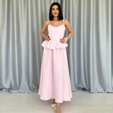Sırt Dekolteli Kolsuz Uzun Elbise