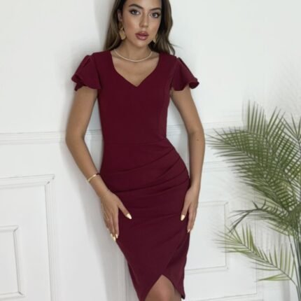 Scuba Kumaş Önü Fırfırlı Midi Boy Elbise