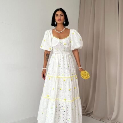 Nar Çiçeği Dantel Detaylı Brode Elbise