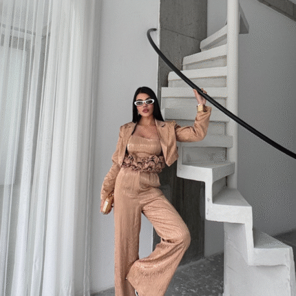 Bej Önü Tek Düğmeli Ceket Pantolon Takım