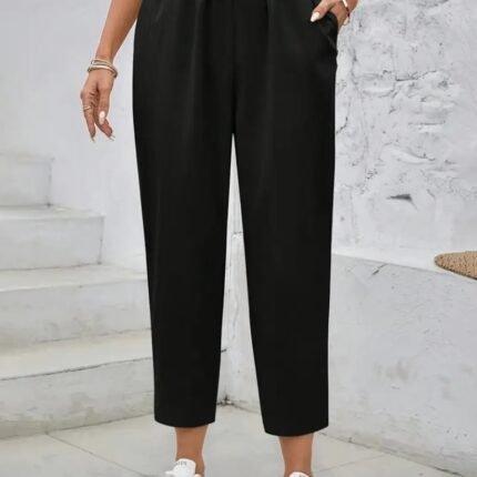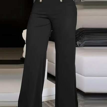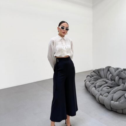Kadın Düğme Detay Bol Paça Ithal Krep Pantolon