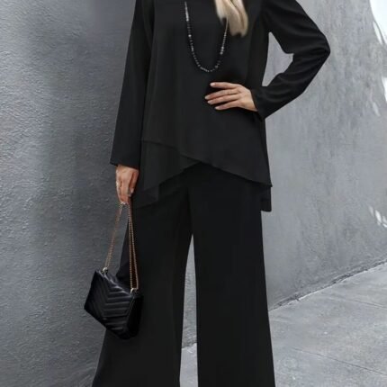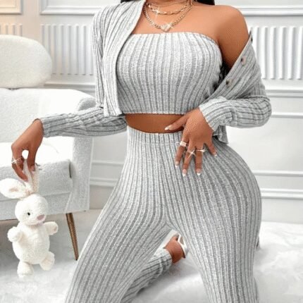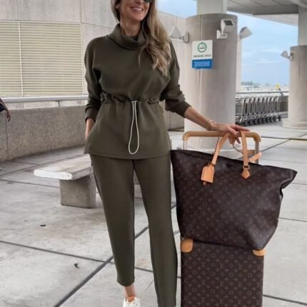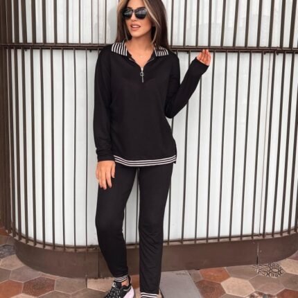 Kadın Uzun Kollu Ribana Ve Fermuar Detay Bluz Ve Yüksel Bel Pantolon 2li Takım