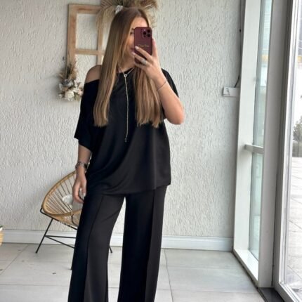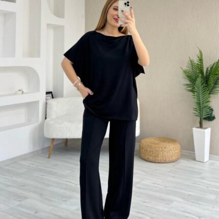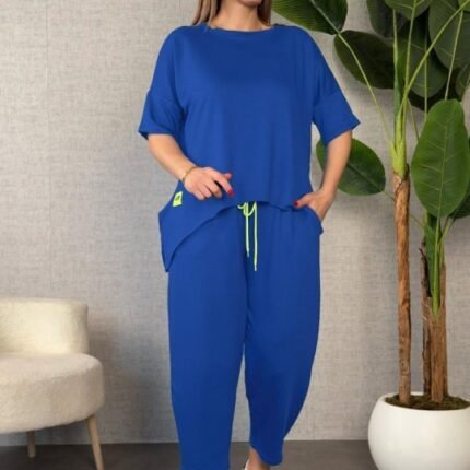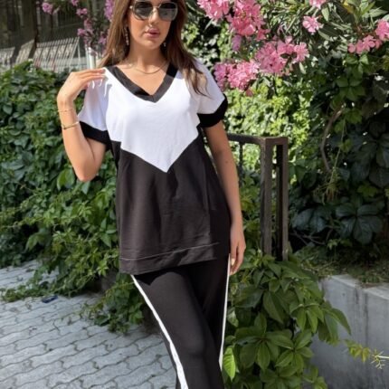 Kadın Modal Dokulu Kumaş Yanı şeritli Takım