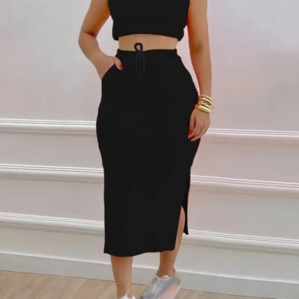 Kadın Kolsuz Askılı Crop Ikili Süprem Takım