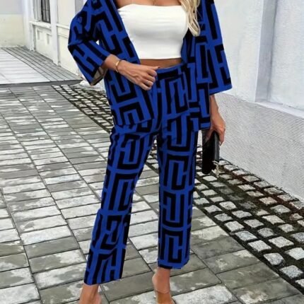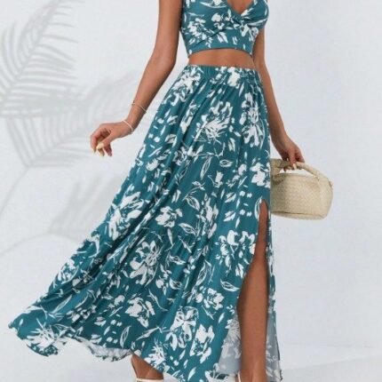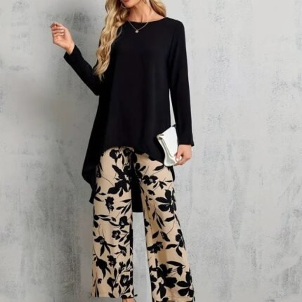 Kadın Dijital Baskılı Dalgıç Kumaş Fıyonk Aksesuarlı Takım