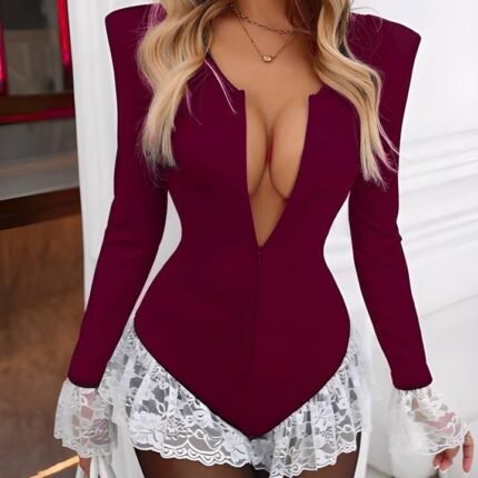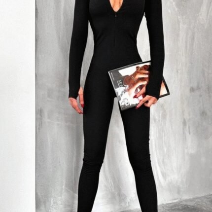 Kadın Uzun Kollu V Yaka Baş Parmak Geçirmeli Detay Kaşkorse Tulum