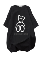 Baskılı Oversize Bisiklet Yaka T-shirt – Siyah