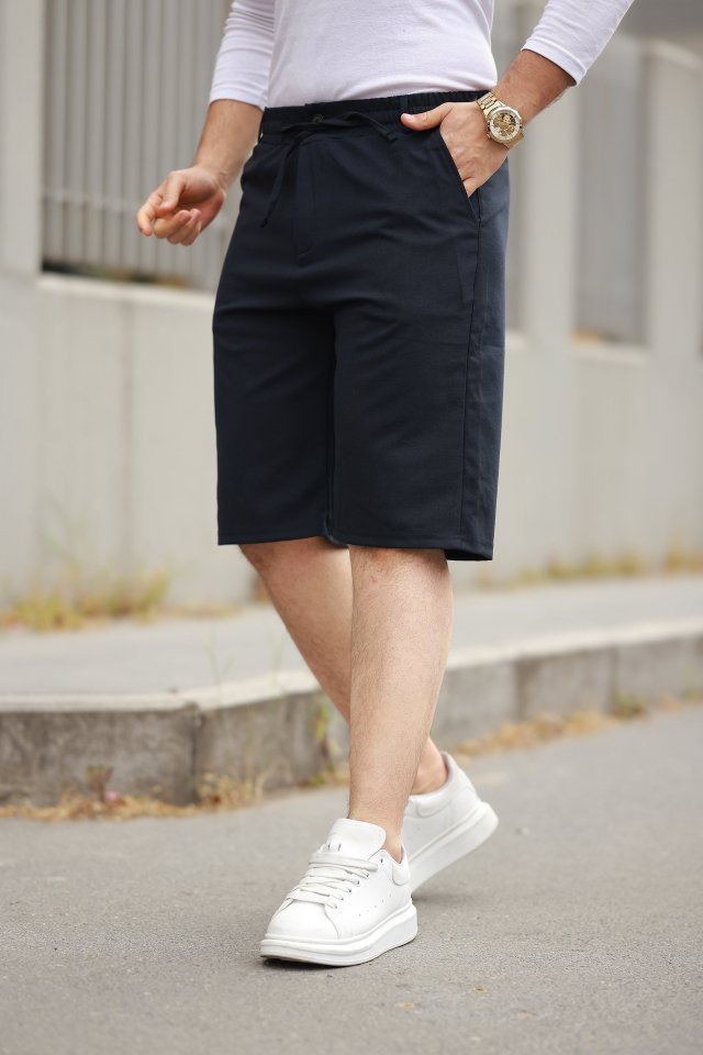 Erkek Beli Bağcıklı Ve Düğmeli Bezayağı Kumaş şort