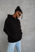 Erkek Düz Kapüşonlu Sweat – Siyah