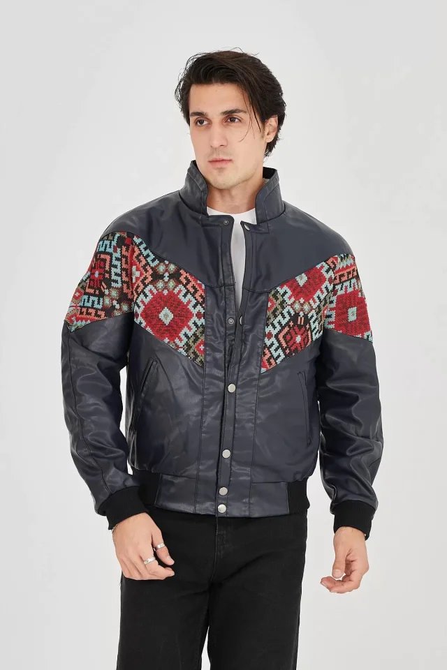 Erkek İçi Astarlı İçten Yaka Kısmı Peluşlu Suni Kumaş Vintage Ceket – Lacivert