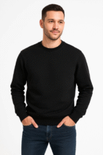 Erkek Üç İplik Düz Bisiklet Yaka SweatShirt – Siyah