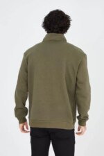 Erkek Yarım Fermuarlı Baskılı Sweat – Yeşil