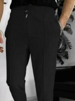 Erkek Yüksek Bel önden Bağcıklı Cepli Waffle Pantolon
