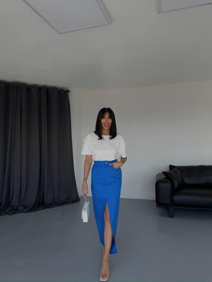 GABARDİN UZUN ÖNDEN YIRTMAÇLI ETEK