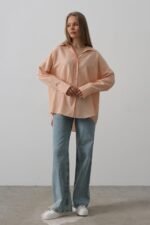 Geniş Manşet Detaylı Gömlek – Açık Somon
