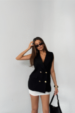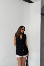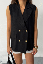 GOLD DÜĞMELİ KETEN YELEK – Siyah