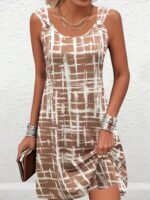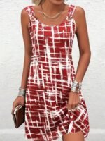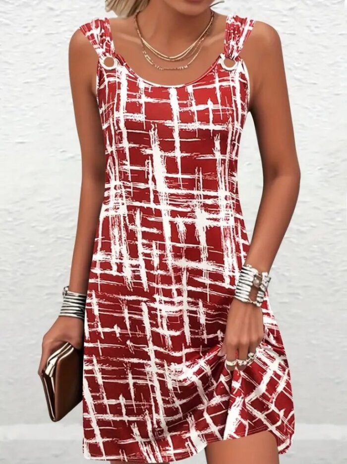 Kadın Askılı Kuş Gözü Detaylı Desenli Süprem Elbise