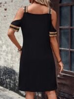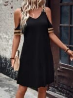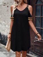 Kadın Askılı V Yakalı Omuzlardan Açık Kısa Viskon Elbise