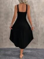 Kadın Boyundan çapraz Askılı Halka Detaylı Asimetrik Kesim Viskon Elbise