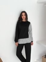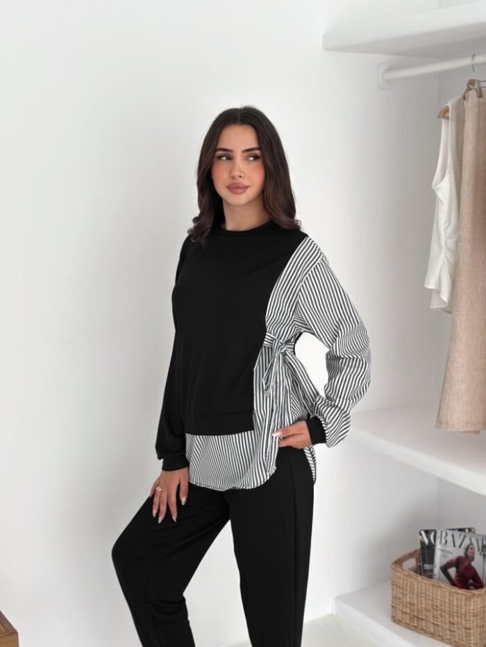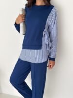 Kadın Gömlek Detay çizgili Yandan Bağlamalı Ikili Takım