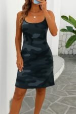 Kadın Ip Askılı Kamuflaj Baskılı Viskon Elbise