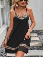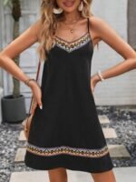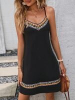 Kadın Ip Askılı V Yakalı Etnik Desenli Detaylı Elbise