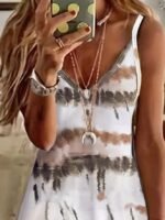 Kadın Ip Askılı V Yakalı Karışık Renkli Süprem Elbise