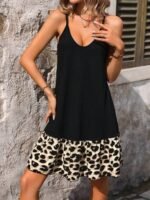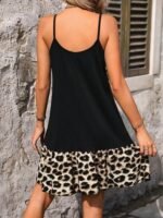 Kadın Ip Askılı Yuvarlak Yakalı Leopar Detaylı Elbise