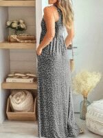 Kadın Kalın Askılı Yuvarlak Yaka Cepli Süprem Maksi Elbise