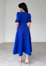 Kadın Kısa Balon Kollu Bisiklet Yaka Geniş Kesim Janjan Krep Elbise
