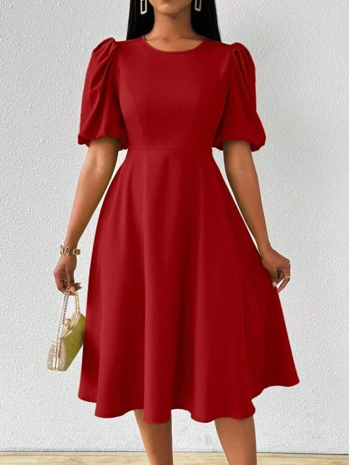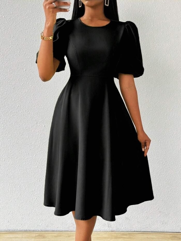 Kadın Kısa Balon Kollu Bisiklet Yaka Kiloş Janjan Krep Elbise
