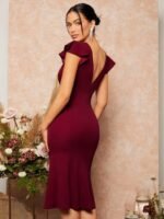 Kadın Kısa Kelebek Kollu Kruvaze Yaka Ithal Krep Midi Elbise