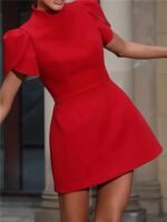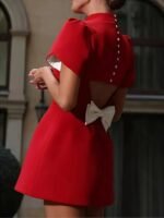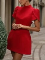 Kadın Kısa Kollu Balıkçı Yaka Arkadan Kelebek Dekolte Detaylı Kısa Atlas Elbise