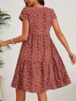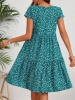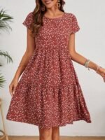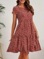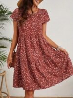 Kadın Kısa Kollu Bisiklet Yaka çiçek Desenli Süprem Elbise